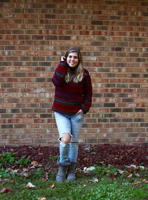 This is one of those sweaters that I bought primarily for those lazy, stay-at-home weekends, but it actually turned out cute enough to wear out! I feel a little bit like a 90's mom, but I also kind of like the feeling;) #ThriftWinI bought it over the summer and couldn't wait to try it. It's so comfy because it's made with a really thick yarn, and the dark, jewel tones make it a fall fave of mine.